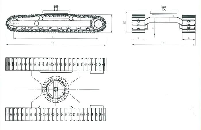 | 中心距L | 底盤總長L1 | 履帶板寬B | 底盤外寬B1 | 底盤高度H | 離地高度H1 | 單速 | 雙速 | ||