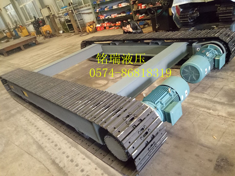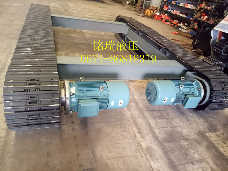 噸不等,可根據客戶要求定做,橡膠履帶或鋼履帶底盤,交流電機帶減速機驅動,外形尺寸可根據客戶主機量身設計生產。