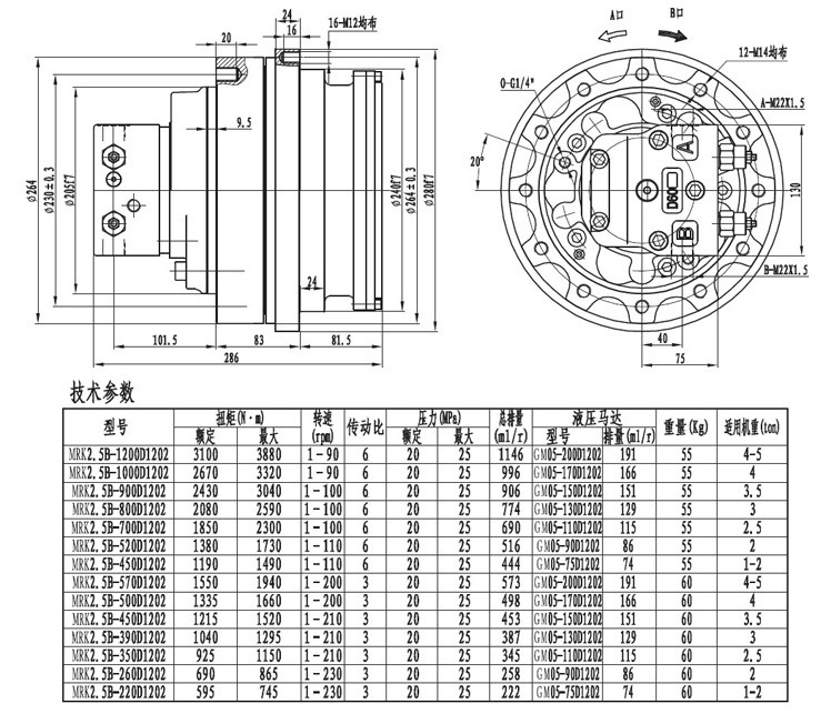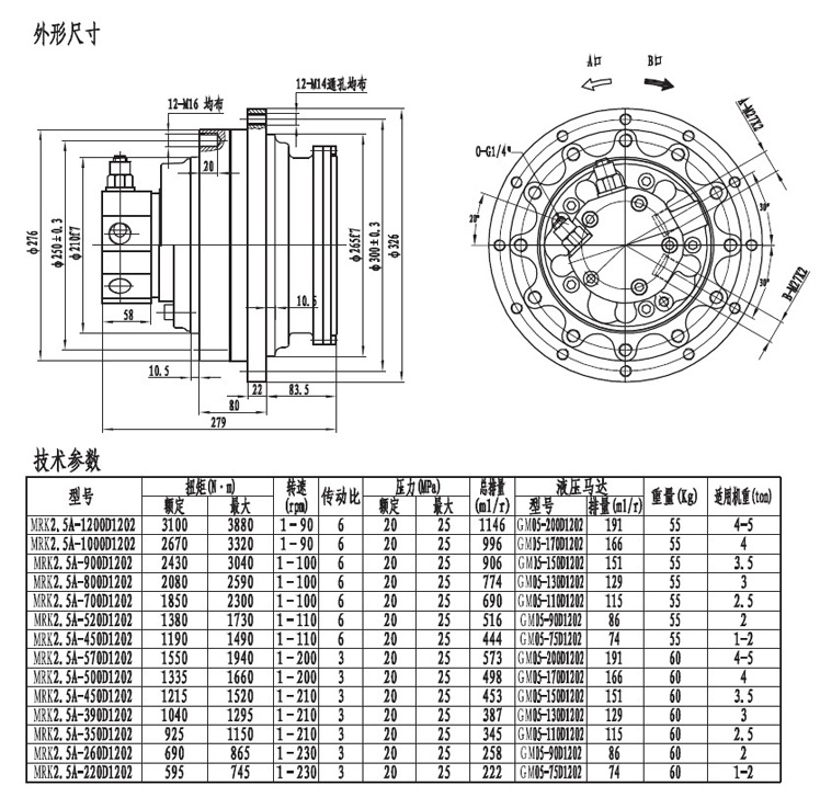 MRK2.5系列履帶(車輪)用行走減速機適應于機重五噸以下,輸出扭矩4000NM左右,采用單級行星減帶器,外觀緊湊。